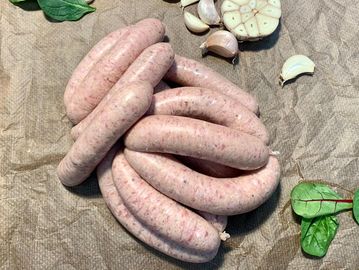 Made in-house, this sausage features rich free-range pork and leek in natural hog casings. Succulent and savoury, this delicious pork sausage is superb as a crowd-pleasing sausage to enjoy with silky mash or other seasonal vegetables.