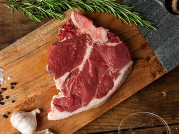 The T bone steak is the big daddy of the steak world, cut from the sirloin and fillet of beef, divided by a T shaped bone. The T bone steak is ideal for those with a big appetite!